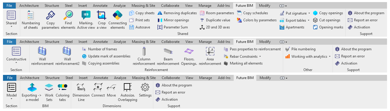 Future is a plugin designed for Autodesk Revit that offers a range of features to speed up the model creation process and documentation release for engineers, architects, and BIM specialists. The plugin provides several ways to improve work efficiency in Revit. It has 36 functions, some of which include sheet numbering, copying sheets, reinforcement of walls, columns, and beams, copying properties, auto-sizing, and removing reinforcement constraints.